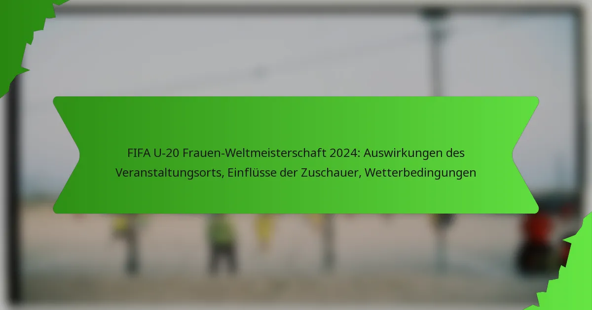 Die FIFA U-20 Frauen-Weltmeisterschaft 2024 wird von verschiedenen Faktoren geprägt, darunter die Auswahl der Spielstätten, die Dynamik der Zuschauer und die Wetterbedingungen. Die Wahl der Standorte verbessert nicht nur die Zugänglichkeit und das Engagement, sondern spielt auch eine entscheidende Rolle bei der Förderung des Frauenfußballs weltweit. Darüber hinaus kann die von den Fans geschaffene Atmosphäre die Leistung der Spieler und die Ergebnisse der Spiele beeinflussen, während unterschiedliche Wetterbedingungen das Spielgeschehen und das Gesamterlebnis für Teams und Zuschauer gleichermaßen beeinträchtigen können.